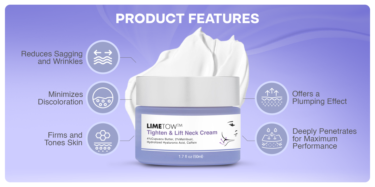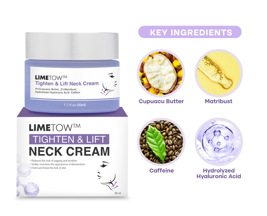 The LIMETOWTM® Tighten Lift Neck Cream offers an impressive formula that truly stands out.Experts like me appreciate its well-balanced use of Cupuacu Butter,Matribus,Hyaluronic Acid,and Caffeine to provide a comprehensive solution to reduce signs of aging,improve hydration,and revitalize the neck area overall.Its breathable and non-sticky texture absorbs quickly,making it an ideal choice for both day and night use.I highly recommend this product to those who want to regain that youthful appearance in their neck.